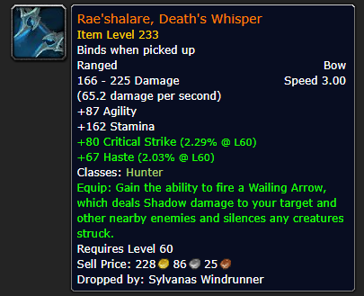 - SylvanasからHunter Weaponがドロップするぞ!